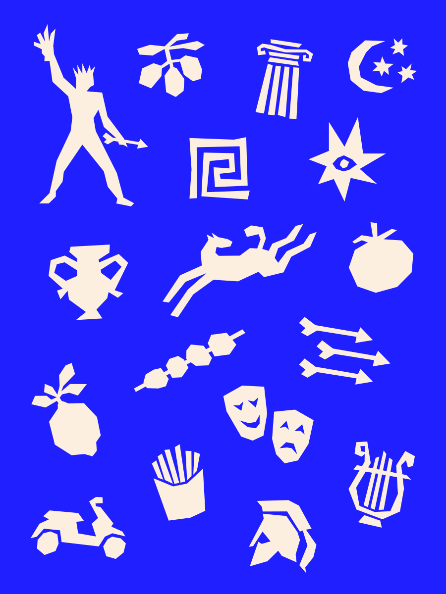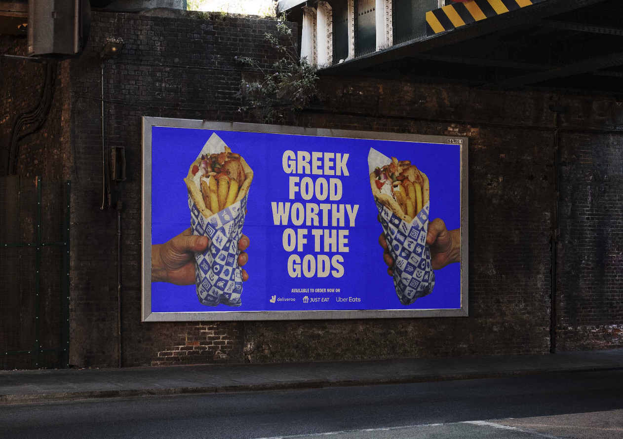 I also created collage cut-style iconography celebrating Greek culture with a modern twist, developing this into a versatile pattern system used across key touchpoints, from greaseproof packaging to social content.