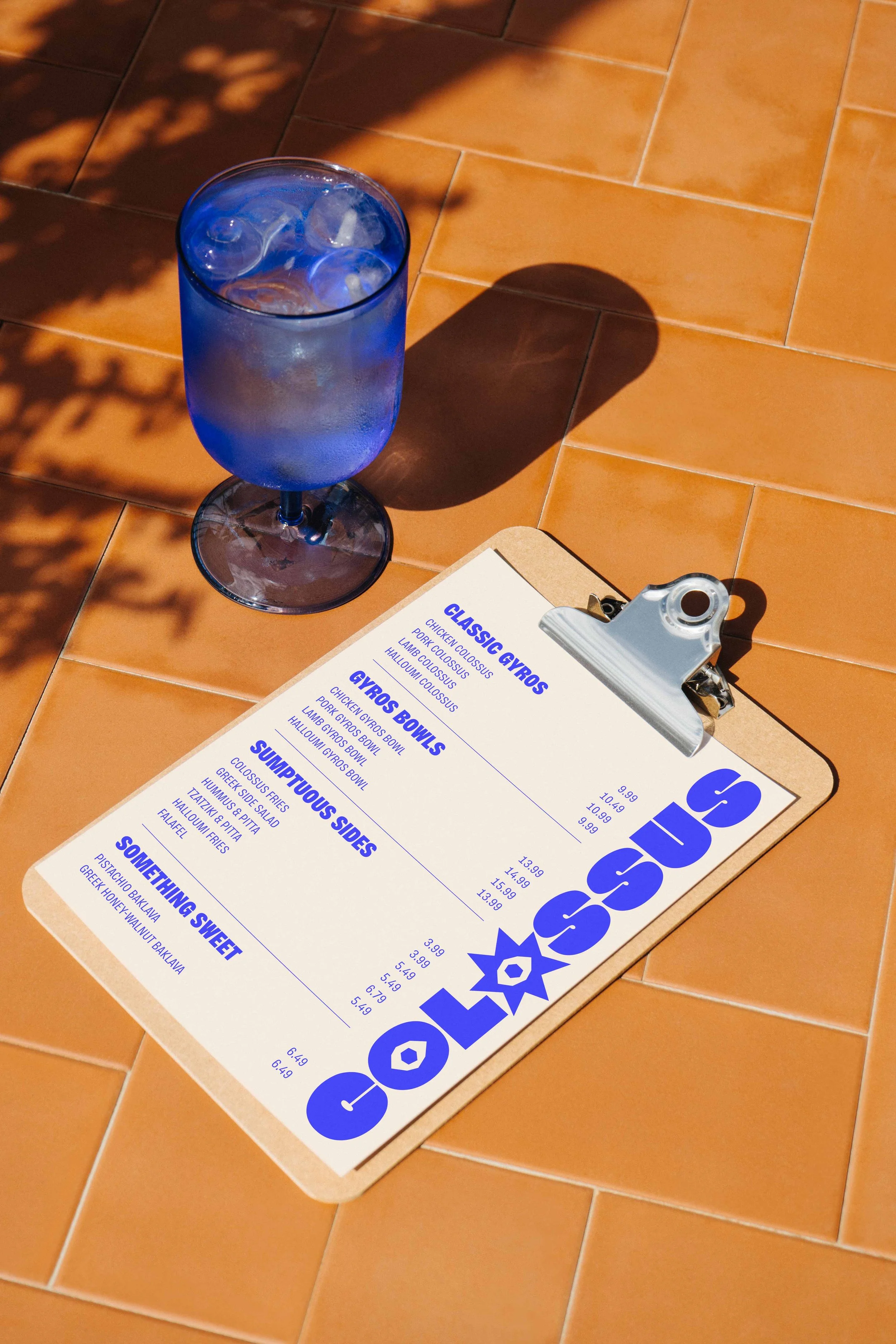 Colossus, a Greek restaurant with a visual identity designed to be confident, bold and full of personality. Inspired by the traditional Greek white and blue palette, I dialled up the blue to maximum vibrancy, giving the brand an unmistakably energetic presence.